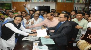 কর্মী–সমর্থকদের মিছিল–স্লোগানে উৎসব মুখর পরিবেশে শেষ দিনে আসন্ন দ্বাদশ জাতীয় সংসদ নির্বাচনের মনোনয়নপত্র জমা দিয়েছেন চট্টগ্রামের ১৬ আসনের প্রার্থীরা। বৃহস্পতিবার (৩০ নভেম্বর) সকাল থেকে বিকেল চারটা পর্যন্ত ১৬ সংসদীয় আসনের আওয়ামী লীগ এবং আওয়ামী লীগের স্বতন্ত্র প্রার্থী, জাতীয় পার্টি, তৃণমূল বিএনপি, বাংলাদেশ কল্যাণ পার্টি, বিএনএফ, সুপ্রিম পার্টি, জাসদ, সাম্যবাদী দল, বাংলাদেশ ইসলামী ফ্রন্ট, ইসলামিক ফ্রন্ট বাংলাদেশ, মুসলিম লীগ, বাংলাদেশ তরিকত ফেডারেশন, বিকল্পধারা বাংলাদেশ, জাকের পার্টি, ন্যাশনাল পিপলস পার্টি, গণমুক্তি সাংস্কৃতিক জোট, বাংলাদেশ কংগ্রেস পার্টি, ন্যাপ, গণফোরাম, বাংলাদেশ জাতীয়তাবাদী আন্দোলন, ইসলামী ঐক্যজোটের প্রার্থীরা তাদের কর্মী–সমর্থকদের নিয়ে দুই রিটার্নিং রিটার্নিং কর্মকর্তার কার্যালয়ে মনোনয়ন জমা দেন। মনোনয়ন জমা দেওয়া ১৬ আসনের মধ্যে রয়েছেন-
