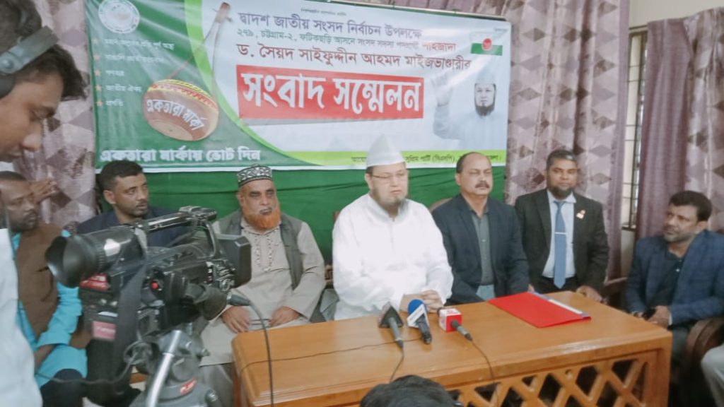 আসন্ন দ্বাদশ জাতীয় সংসদ নির্বাচনে ফটিকছড়ি আসনের প্রার্থী বাংলাদেশ সুপ্রীম পার্টির (বিএসপি) চেয়ারম্যান শাহাজাদা ড. সৈয়দ সাইফুদ্দীন আহমদ মাইজভাণ্ডারী বলেছেন, সুষ্ঠু নির্বাচনের আশ্বাসে আমরা নির্বাচনে এসেছি। আমরা চাই গণতান্ত্রিক প্রক্রিয়ায় নির্বাচন হোক। ভোটাররা তাদের ভোটারাধিকার প্রয়োগ করুক। মানুষের মৌলিক অধিকার নিশ্চিত হোক। ফটিকছড়ি আর সন্ত্রাস আতঙ্কের এলাকা নয়, স্মার্ট ফটিকছড়ি হিসেবে গড়ে তোলা হবে।